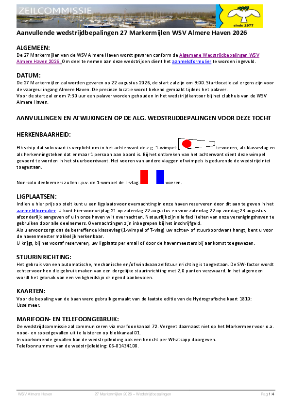 Doe mee aan de 27 Markermijlen, een uitdagende zeilwedstrijd waarin je in één dag non-stop vaart naar het iconische Paard van Marken en weer terug naar WSV Almere Haven. Of je nu solo aan de start verschijnt of met een volledige bemanning: deze wedstrijd is er voor iedere zeiler die houdt van competitie en avontuur.
