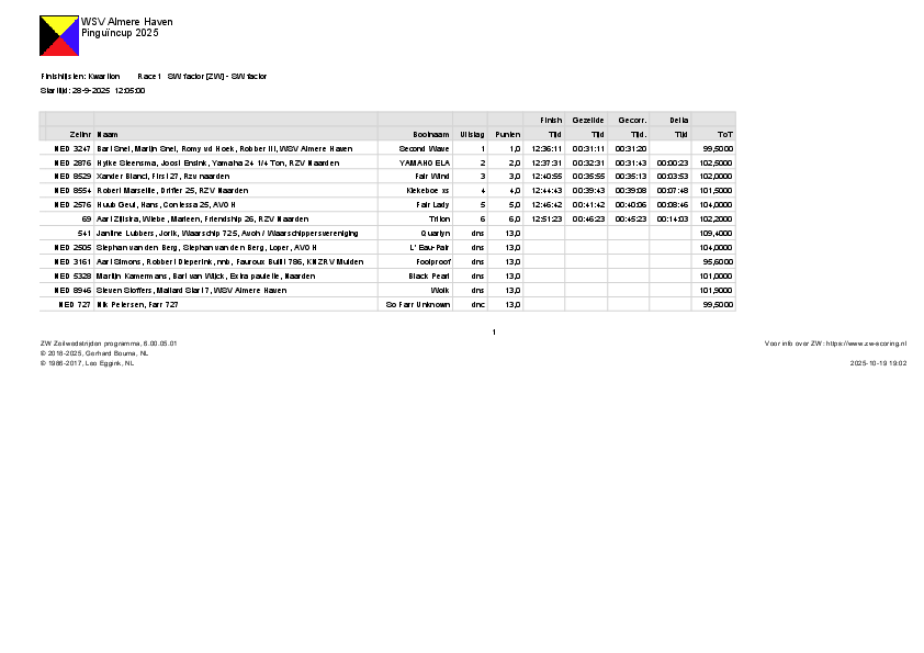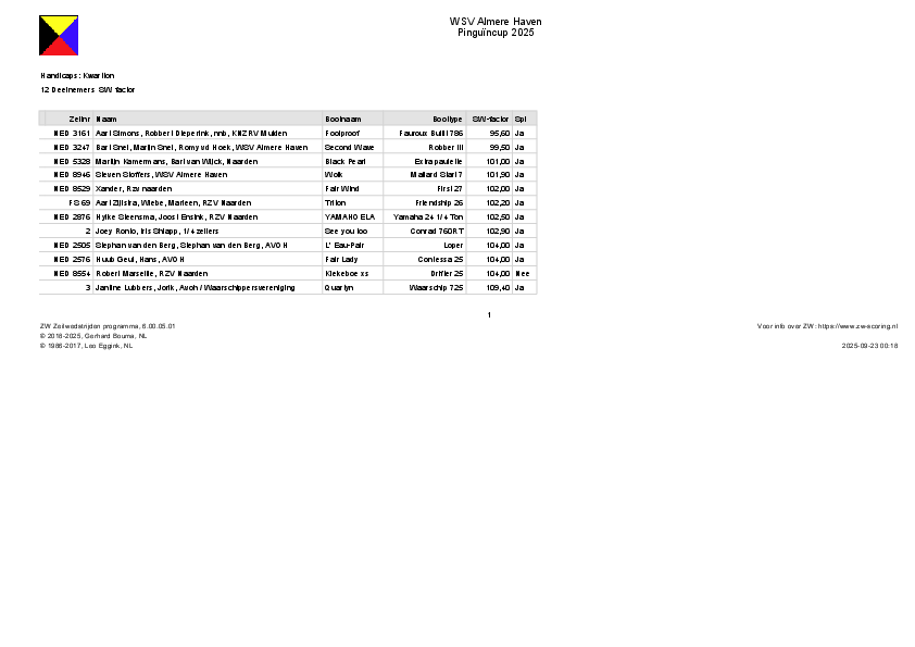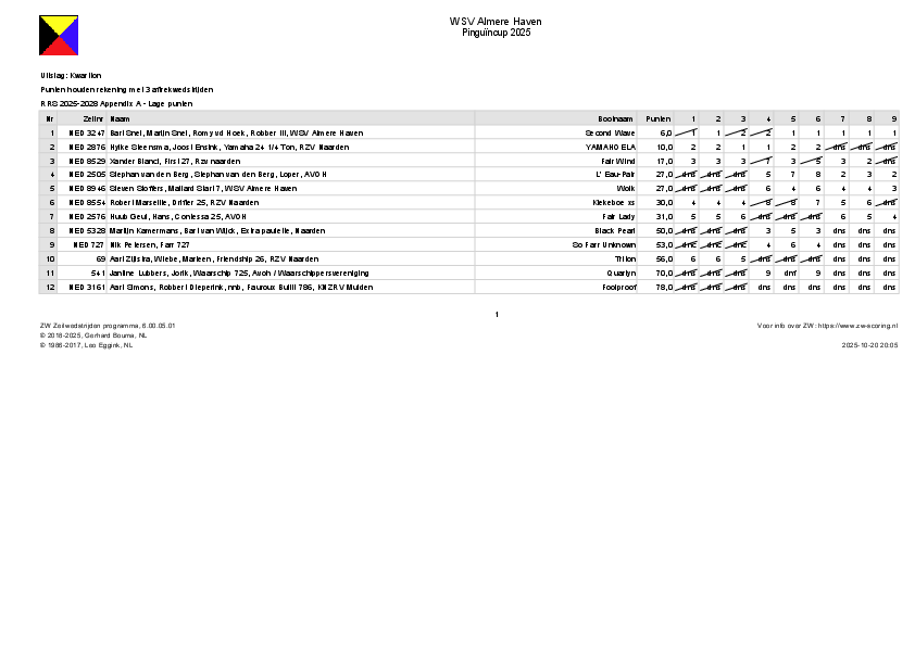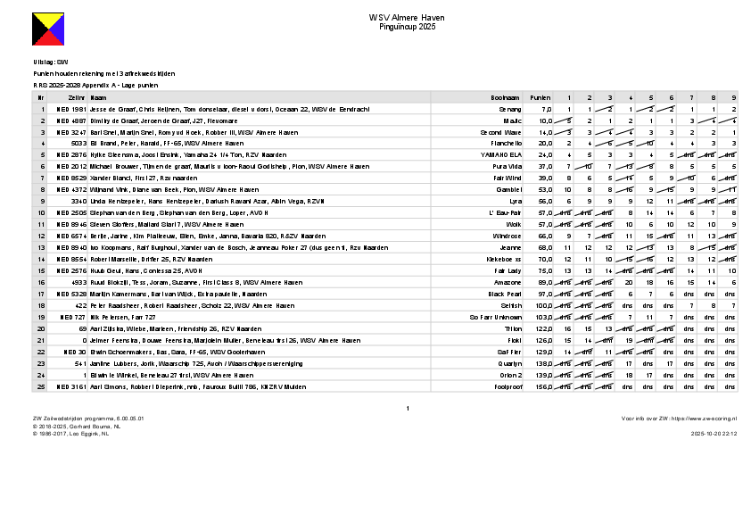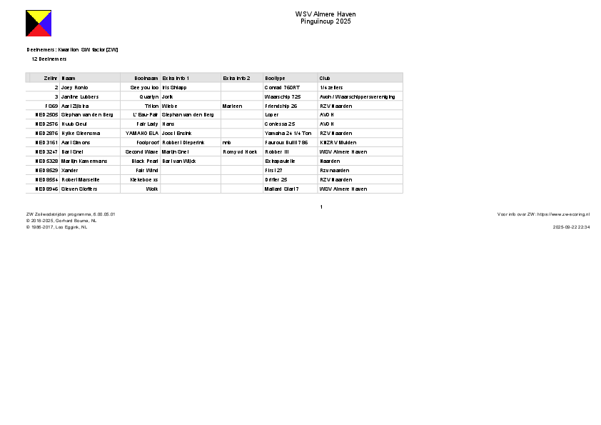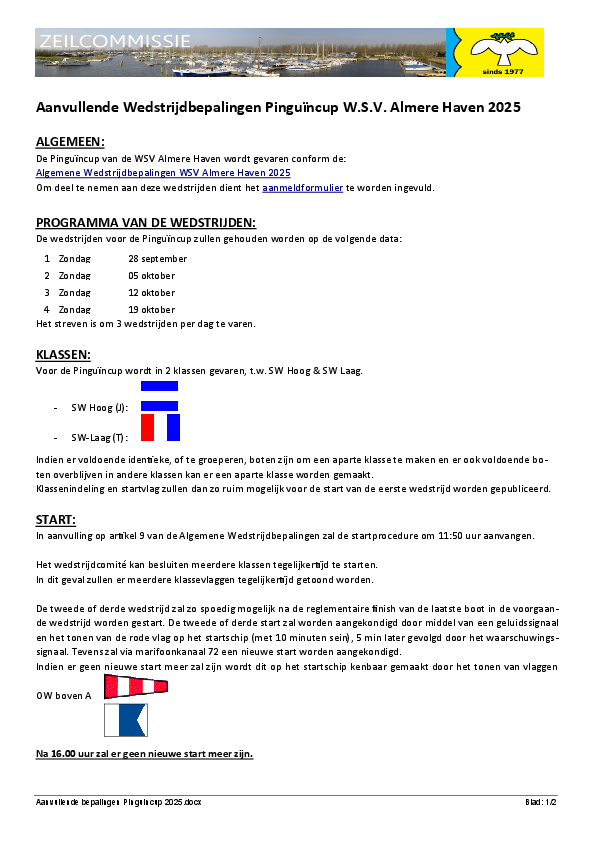 Voor slechts €35 per boot (30 euro voor leden WSV Almere Haven) doe je mee aan de hele serie wedstrijden. Op 19 oktober sluiten we af met een feestelijke prijsuitreiking en een gezellig drankje. Wie wordt dit jaar de Keizerspinguïn van het Gooimeer?